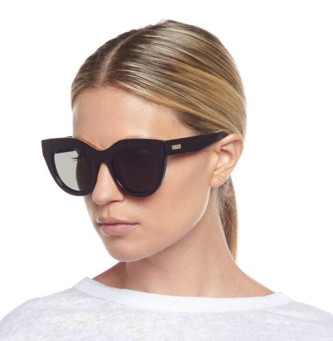 A favourite of Meghan Markle and Olivia Palermo, the Air Heart silhouette is an iconic Le Specs style. With proportions reminiscent of a cat eye, the style is designed in thick black and luxurious metal top bar inlay, then fitted with premium zero base khaki flat lenses. The perfect sunglass to suit all face shapes.