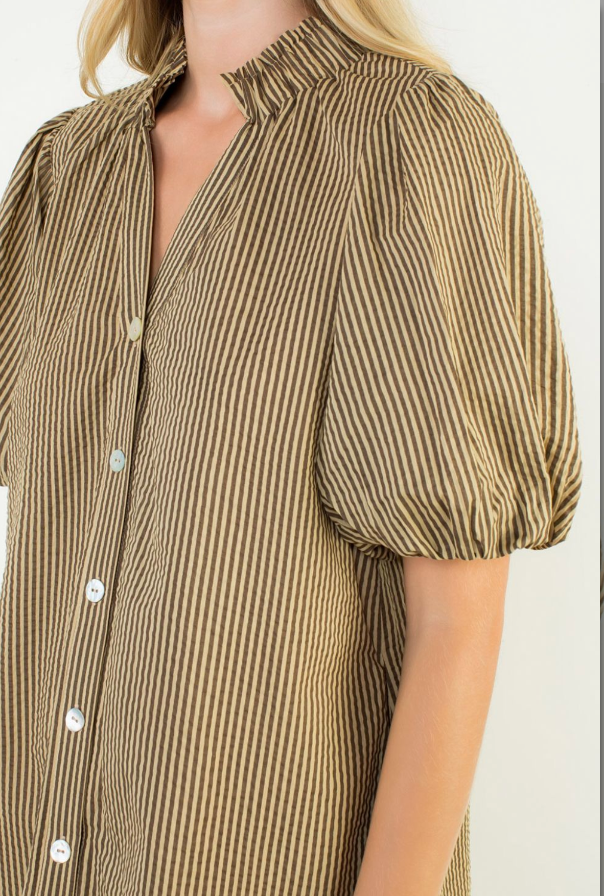 Jen Stripe Button Down Dress Brown