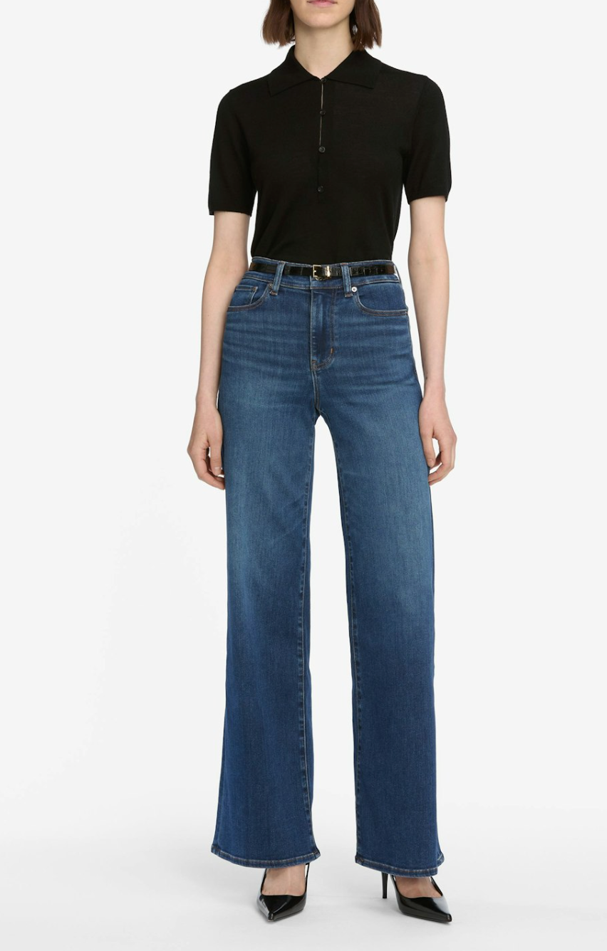 A FRAME introduction to the best-selling Palazzo silhouette, this pair is designed with a flattering high rise, fitted hip, and subtle wide-leg flare that hits at the floor. Crafted from a sustainable, ultra-stretch cotton blend for soft and comfortable wear.