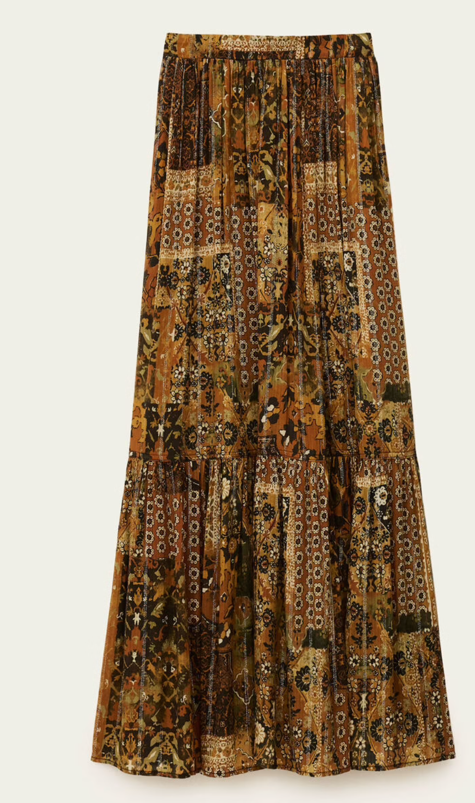 - 70s style print - Smocked rear waist - Seam detail with gathers on the base