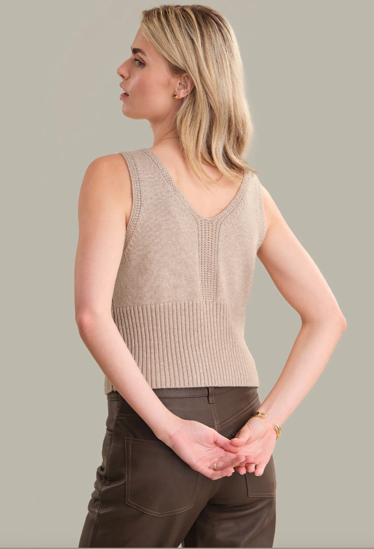 Offering simple elegance with its V-neck cut and sleeveless design, the Brynn tank provides all-day comfort and versatility. Pair it with the matching Sola Cardigan for a coordinated, effortlessly chic look, or wear it alone in minimalist and refined ensembles. True To Size Length: 19" Machine wash, tumble dry low. 57% Cotton, 28% Acrylic, 15% Polyester