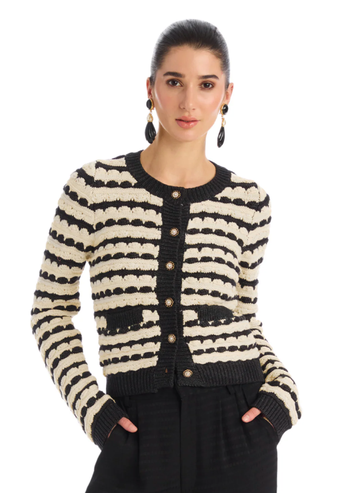 Slim cardigan silhouette with novelty buttons and front slit pockets